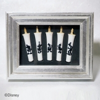 100匁の大きなろうそくに特別なミッキーマウスを手描きしました。ドーム入りの存在感ある逸品です。¥198,000(税込)