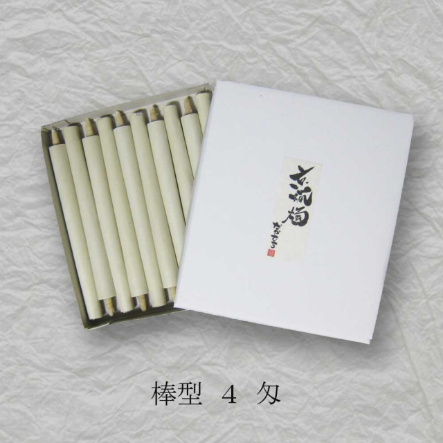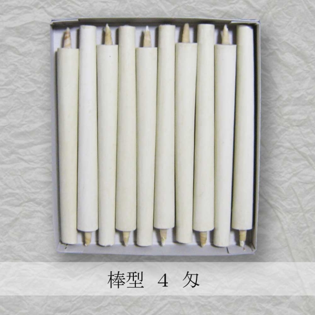 京都伏見中村ローソク HOME > オンラインショッピング > 京蝋燭 棒型・スキヤ・ヤマエ (ハゼ蝋) > 棒型和ろうそく 4匁