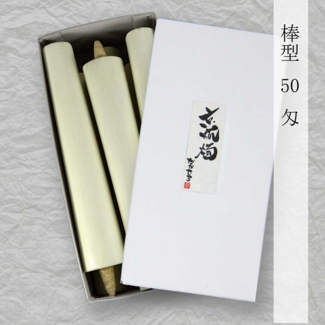 棒型和ろうそく 50匁 | 京蝋燭 棒型・スキヤ・ヤマエ (ハゼ蝋) | 京都伏見の和蝋燭(ろうそく)製造・販売、有限会社中村ローソク