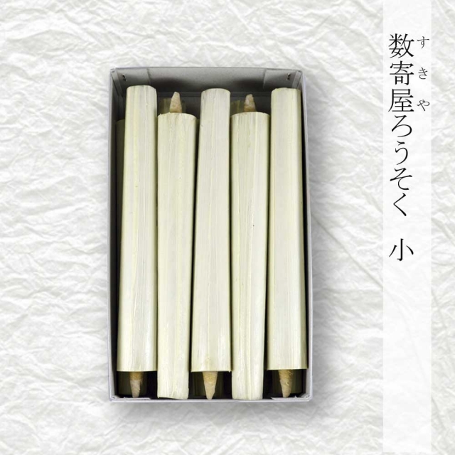 京都伏見中村ローソク HOME > オンラインショッピング > 京蝋燭 棒型・スキヤ・ヤマエ (ハゼ蝋) > 数寄屋(すきや)ろうそく(小)