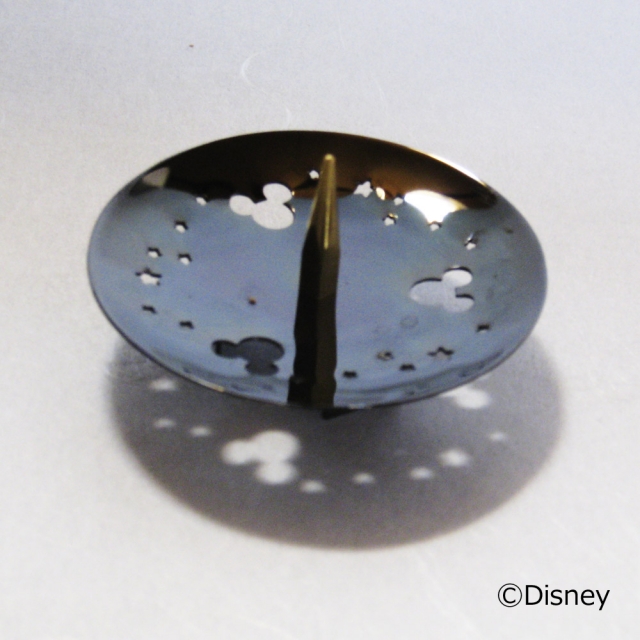 ろうそくを灯すとミッキーマウスのシルエットが浮かび上がる透かし燭台です。