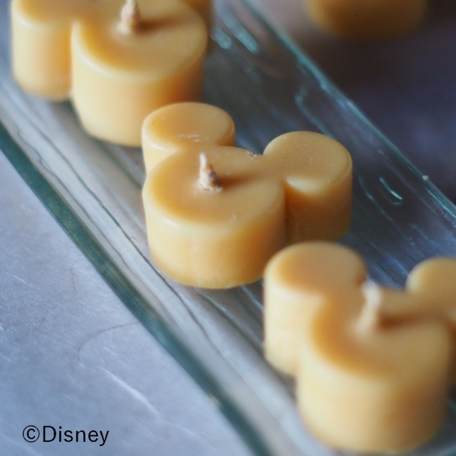 丸が三つのミッキーマウスのアイコンの形をした和ろうそく。