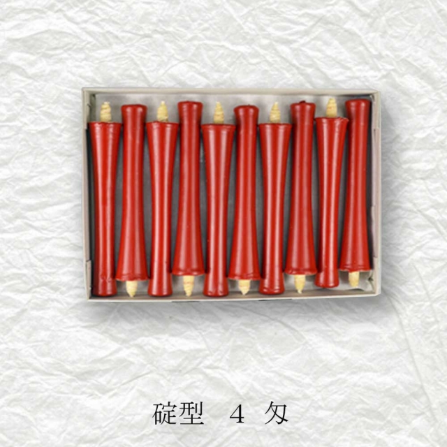 京都伏見中村ローソク HOME > オンラインショッピング > 京蝋燭 碇型(米ヌカ・パーム・ハゼ蝋) > 碇型和ろうそく(朱・白) 4匁