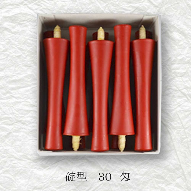 京都伏見中村ローソク HOME > オンラインショッピング > 京蝋燭 碇型(米ヌカ・パーム・ハゼ蝋) > 碇型和ろうそく(朱・白) 30匁