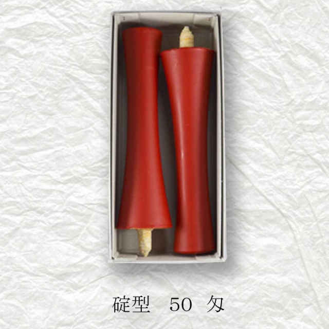 京都伏見中村ローソク HOME > オンラインショッピング > 京蝋燭 碇型(米ヌカ・パーム・ハゼ蝋) > 碇型和ろうそく(朱・白) 50匁