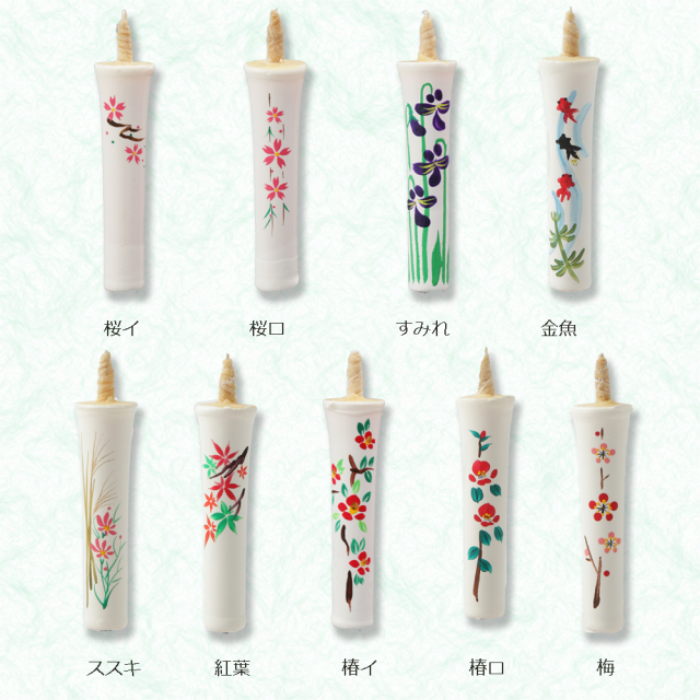 京都伏見中村ローソク HOME > オンラインショッピング > 手描き絵蝋燭 2匁(小さな絵ろうそく) > 2匁1本入り 絵ろうそく