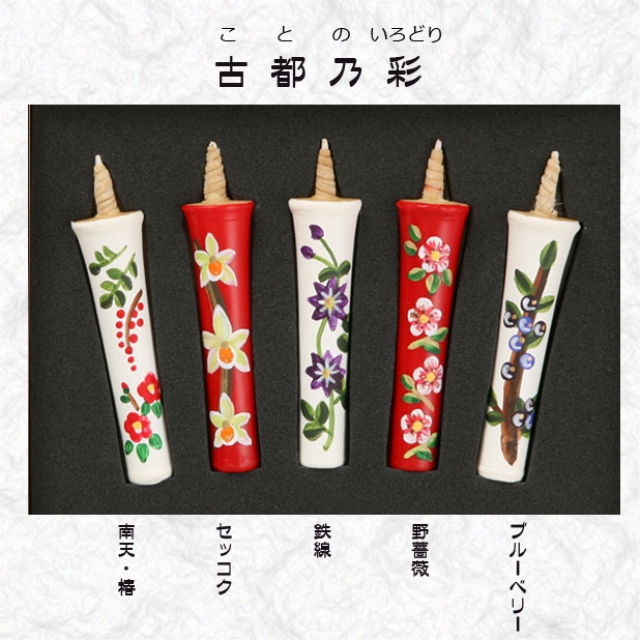 京都伏見中村ローソク HOME > オンラインショッピング > 手描き絵蝋燭 2匁(小さな絵ろうそく) > 2匁5本入り 絵ろうそく