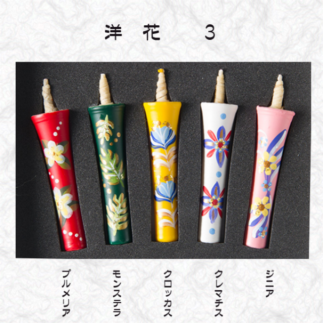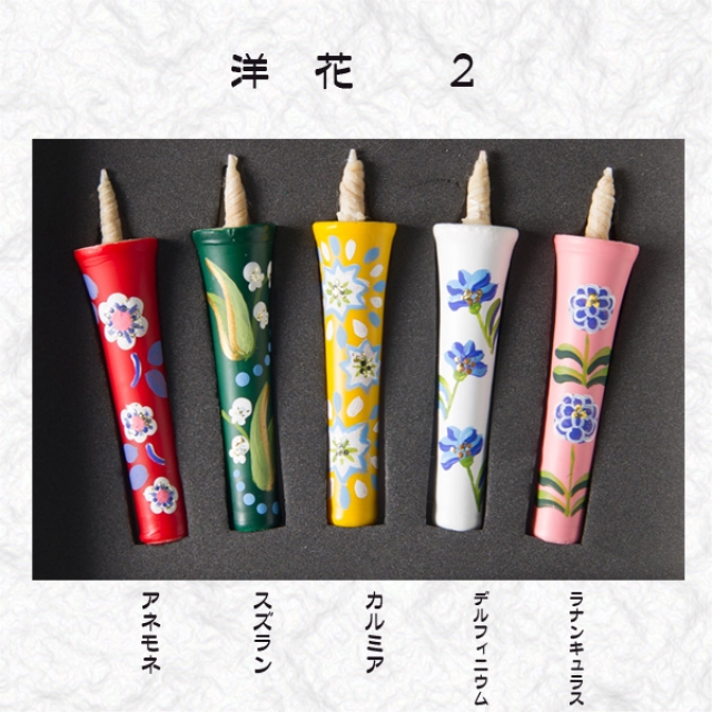 京都伏見中村ローソク HOME > オンラインショッピング > 手描き絵蝋燭 2匁(小さな絵ろうそく) > 2匁5本入り 洋花