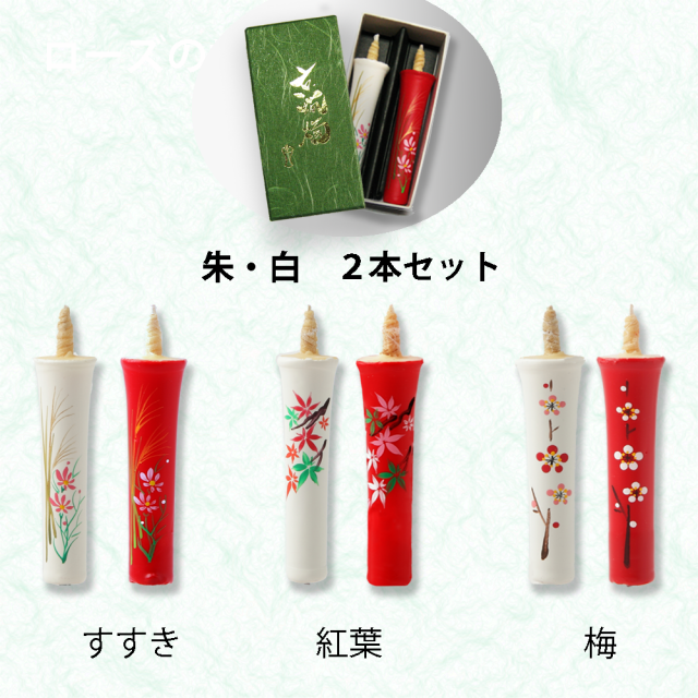 京都伏見中村ローソク HOME > オンラインショッピング > 手描き絵蝋燭 2匁(小さな絵ろうそく) > 2匁2本入り 絵ろうそく