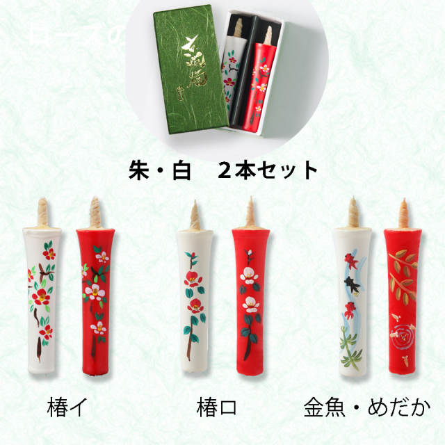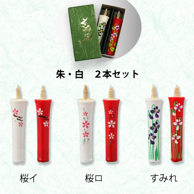 京都伏見中村ローソク HOME > オンラインショッピング > 手描き絵蝋燭 2匁(小さな絵ろうそく) > 2匁2本入り 絵ろうそく