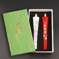 碇型の和蝋燭に、季節の花の絵を描いた美しい絵蝋燭。3種類の中からお選びください。進物に最適な桐箱入り。¥4,070(税込) -
