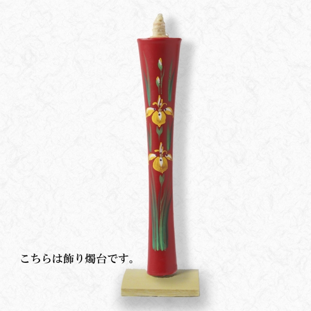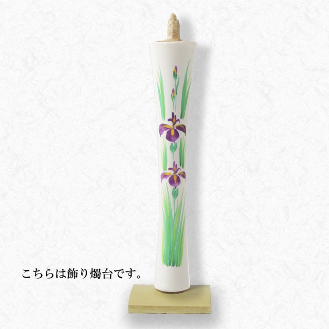 京都伏見中村ローソク HOME > オンラインショッピング > 手描き絵蝋燭 15匁以上(大きな絵ろうそく) > 15匁 あやめ 飾り燭台付き