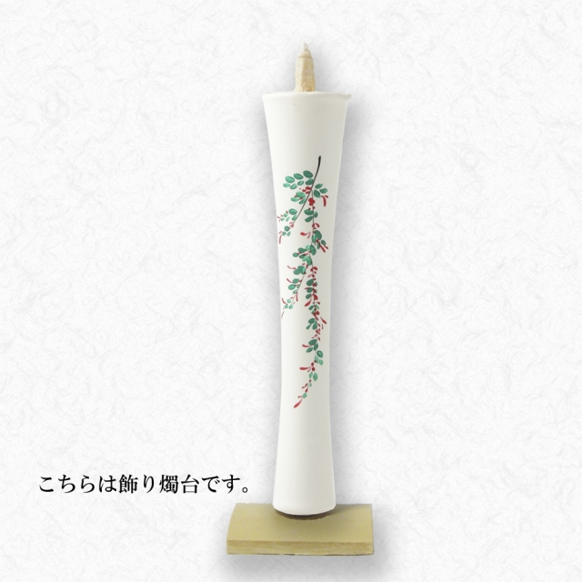 京都伏見中村ローソク HOME > オンラインショッピング > 手描き絵蝋燭 15匁以上(大きな絵ろうそく) > 15匁 萩 飾り燭台付き