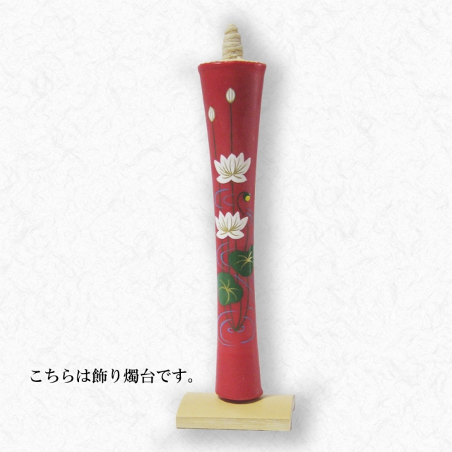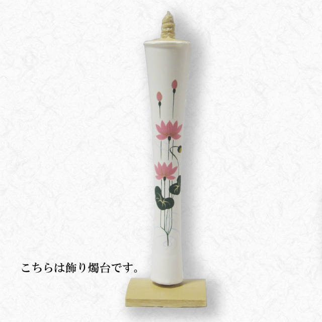 京都伏見中村ローソク HOME > オンラインショッピング > 手描き絵蝋燭 15匁以上(大きな絵ろうそく) > 15匁 蓮 飾り燭台付き