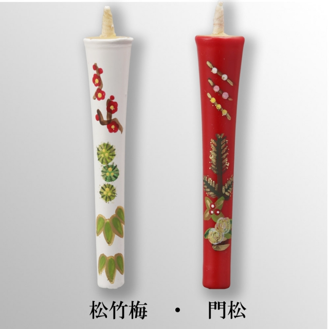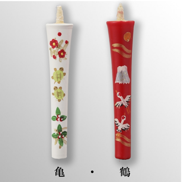 京都伏見中村ローソク HOME > オンラインショッピング > 香り付手描き絵蝋燭 > 香付4匁2本入り お正月に縁起の良い絵柄2種