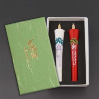 碇型の和蝋燭に、季節の花の絵を描いた美しい絵蝋燭。3種類の中からお選びください。進物に最適な桐箱入り。¥4,070(税込) -