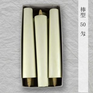 ●棒型朱ろうそくの全てのサイズ、棒型白ろうそく100匁より大きいサイズは特注です。御注文頂いてから製造いたしますので、お届までお日にちを頂きます。くわしくはお問合せください。