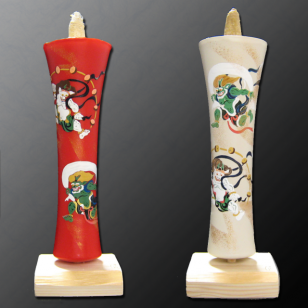 100匁という大きなろうそくに、京絵師が風神雷神図を手描きした迫力のある逸品です。