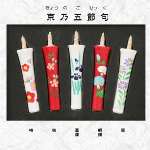 碇型の和蝋燭に、京都をイメージした花々を描きました。