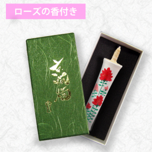 碇型の和蝋燭に、犬、ヒヨコ、ホタル・みつばち、薔薇(朱)薔薇(白)の6種類の絵を揃えました。お好きな柄をお選びください。ローズの甘い香り付きのかわいらしい絵ろうそく。